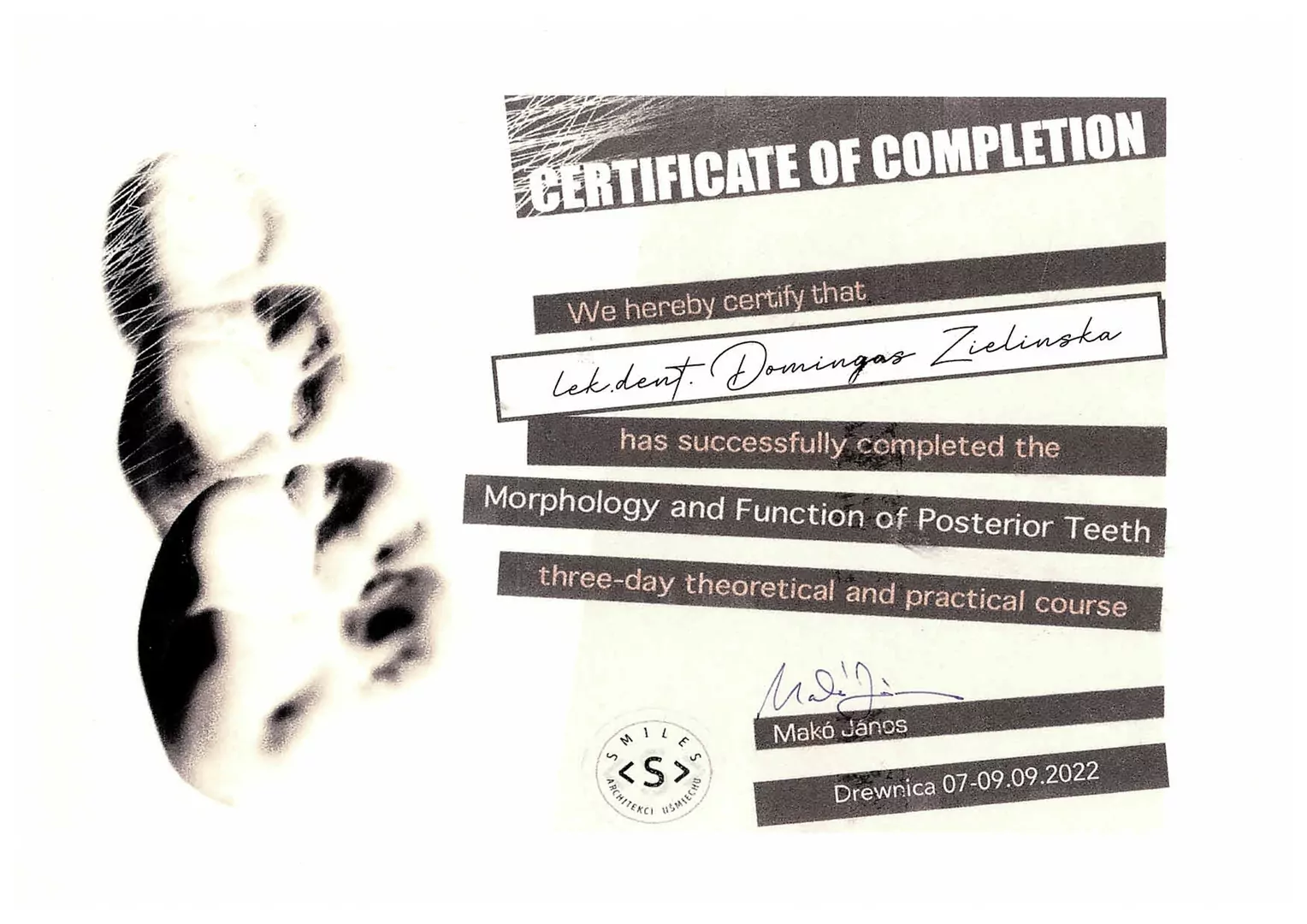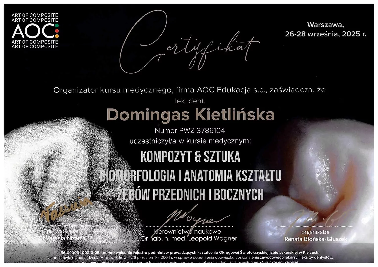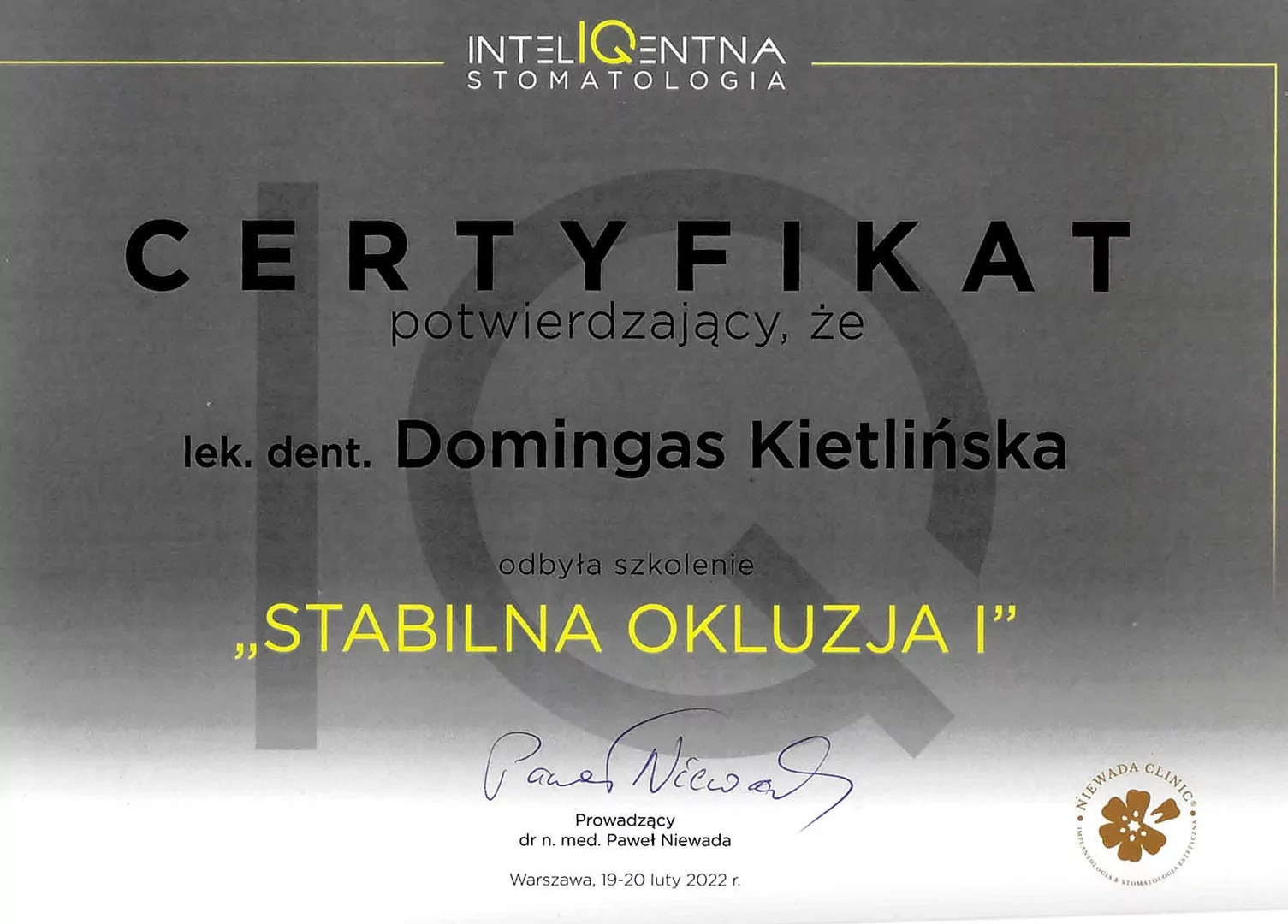 i zachowawczej. Do jej zainteresowań zawodowych należy również protetyka i chirurgia. W swojej codziennej pracy kieruje się mottem „Profilaktyka to fundament, piękny uśmiech to efekt”.