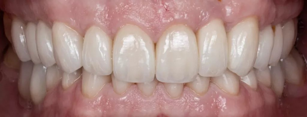 Cały proces był efektem kompleksowego planu leczenia – obejmującego ortodoncję, implantologię oraz rekonstrukcję protetyczną licówkami pełnoceramicznymi.